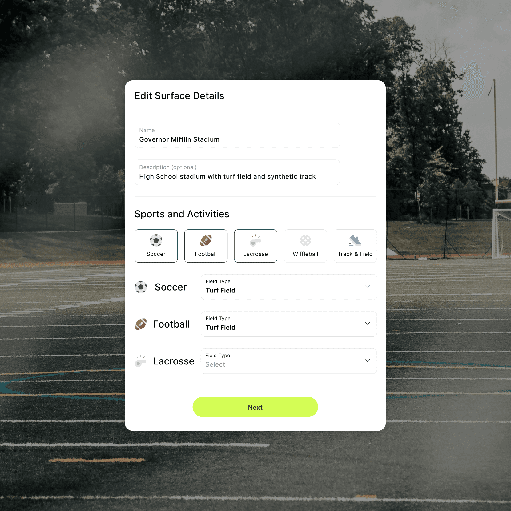 Easily configure rentals for different sports, surfaces, and layouts on demand.
